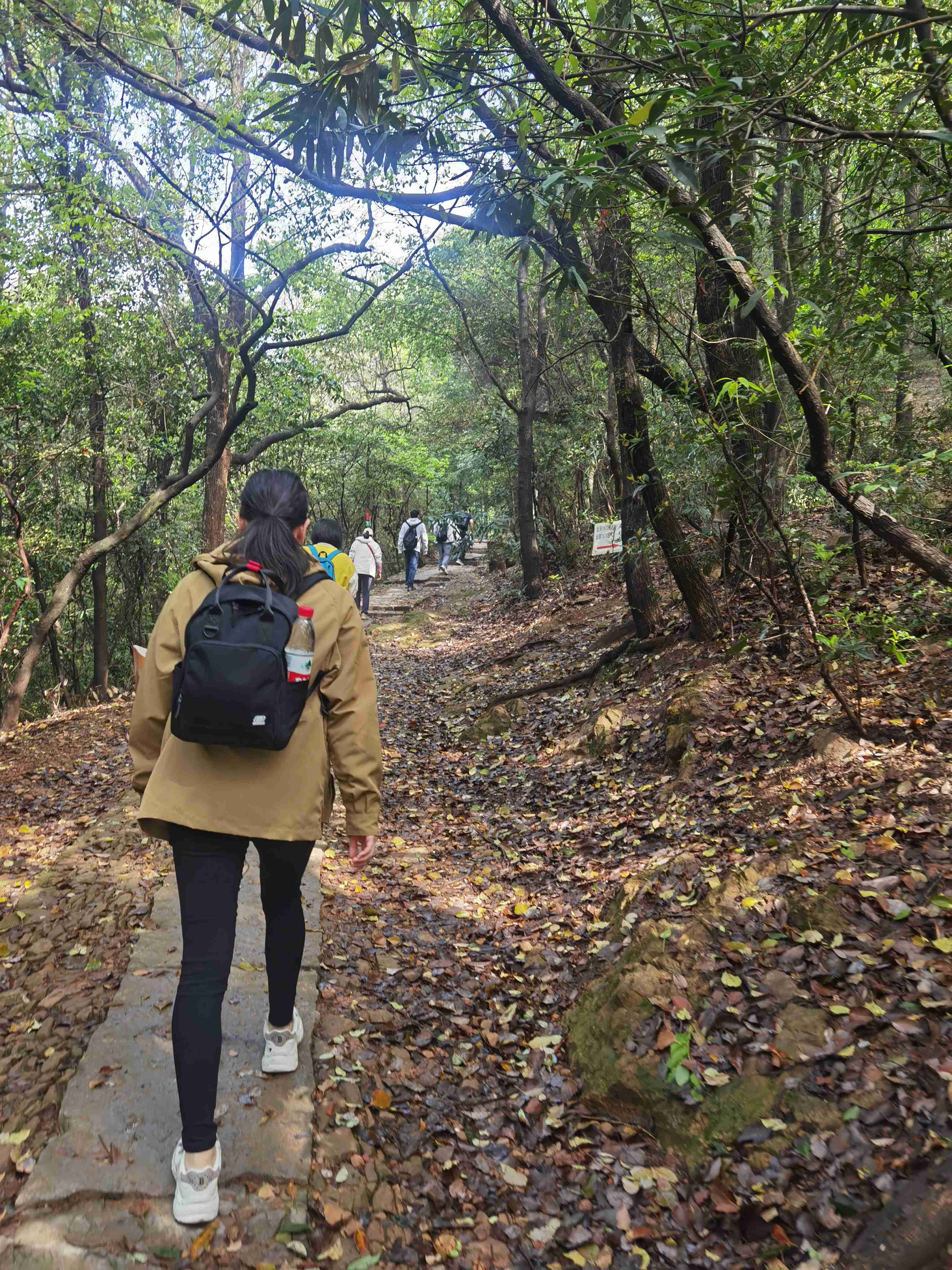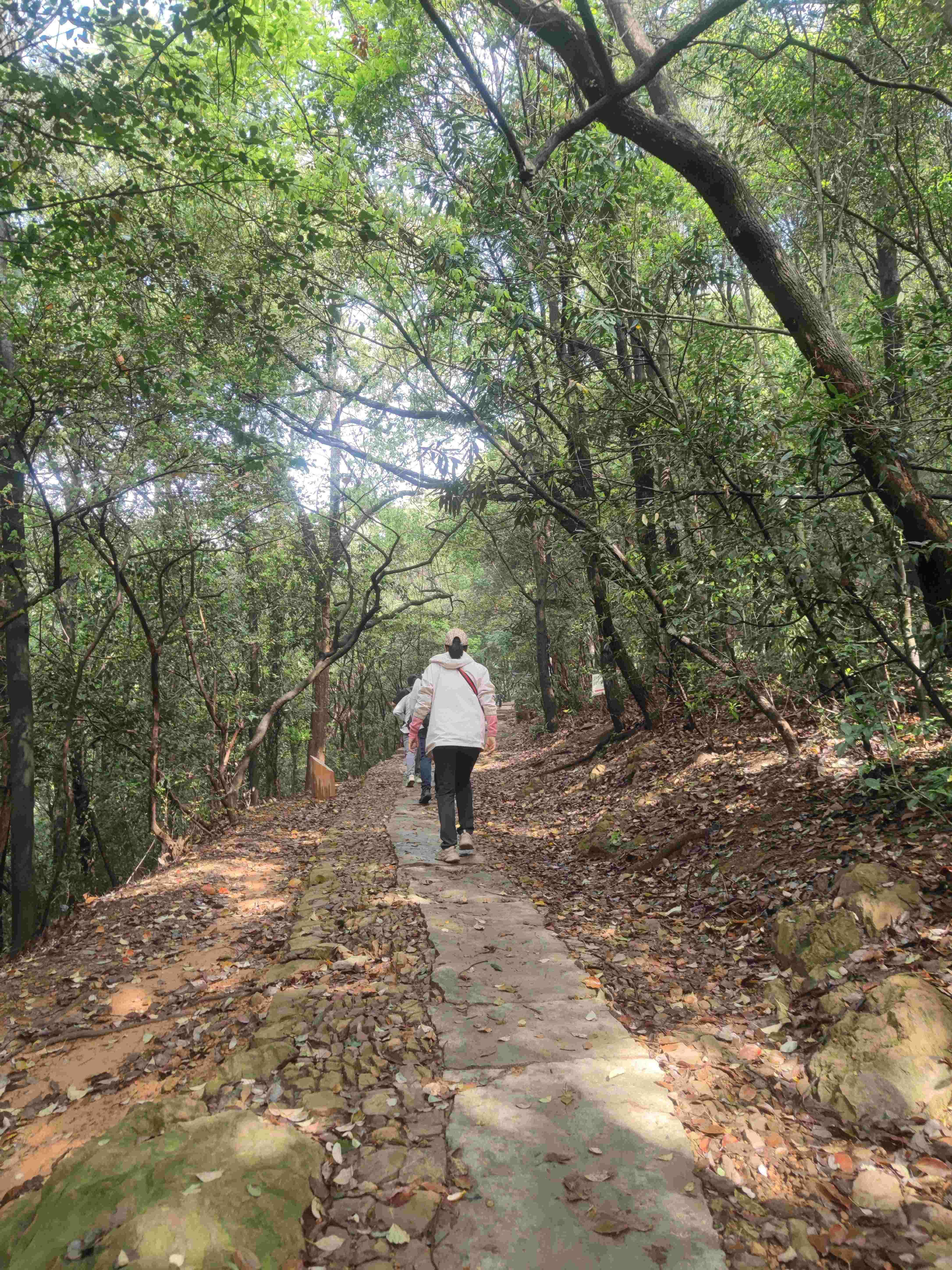 我们沿着蜿蜒的山路向上攀登。起步之处皆是茶树,沿途的风景美不胜收,山间清新的空气和绿树成荫的景色让人心旷神怡。在爬山过程中,团队成员们互相鼓励、互相扶持,共同面对山路崎岖的挑战。大家充分发挥了团队协作精神,相互帮助,克服了重重困难。
